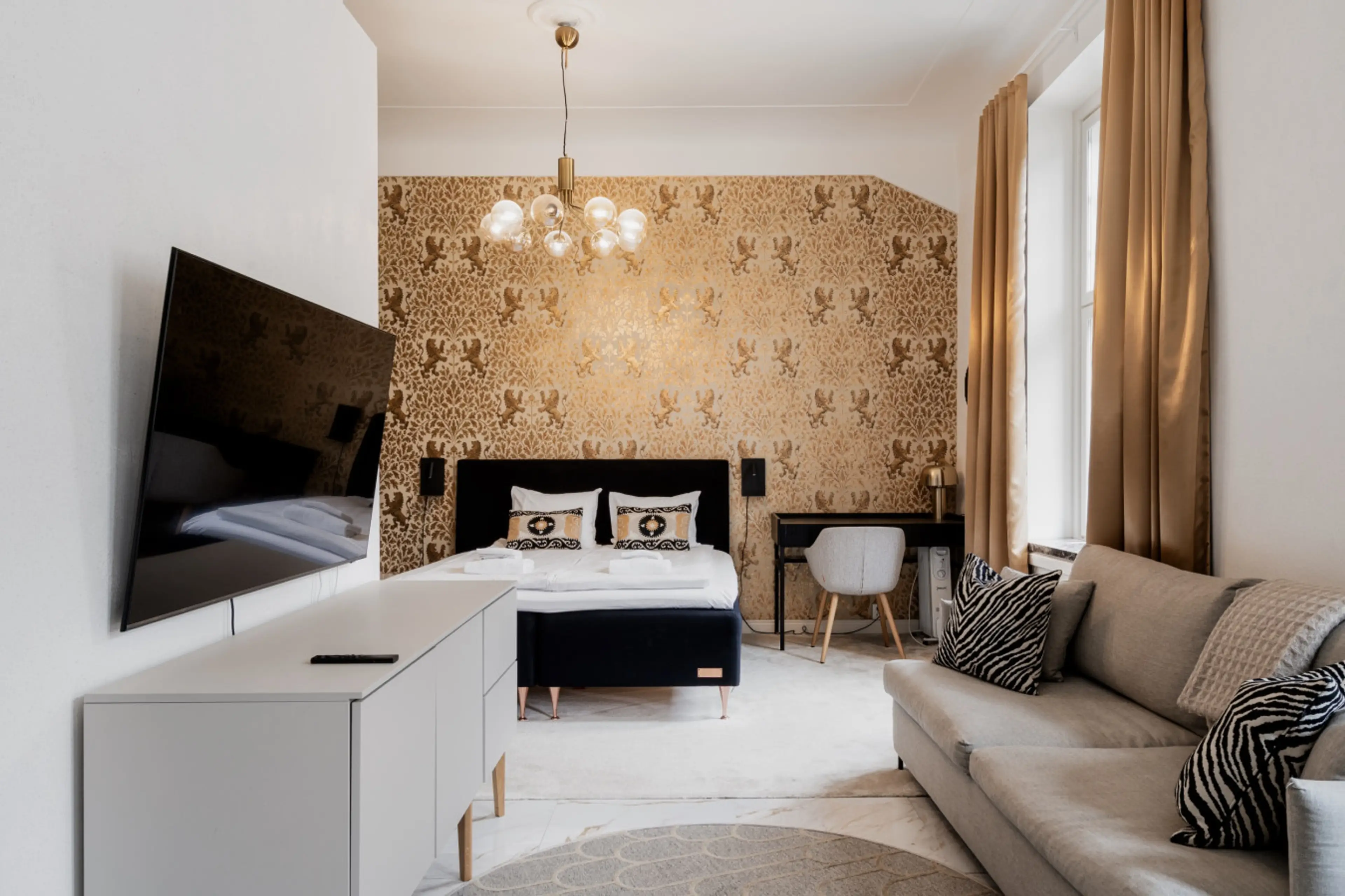 Experience historic charm and modern luxury in this stunningly renovated 1907 apartment in the heart of Helsinki. Located steps from the Railway Station, this high-end home blends period elegance with designer finishes. Relax in a plush 180cm king bed or the comfortable sofa bed, accommodating up to...